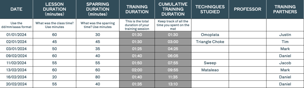 BJJ Training Journal - Google Sheets to track your BJJ Journey